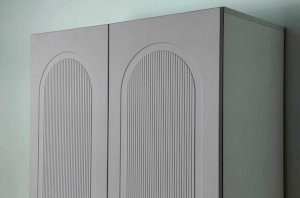 Корпус шкафа выполнен из ЛДСП толщиной 16 мм, фасады изготовлены из МДФ в плёнке ПВХ и декорированы фрезеровкой, подчёркивающей стиль серии Милана. Оригинальные круглые ручки и опоры придают шкафу аккуратный и современный вид, делая его гармоничной частью детского интерьера.